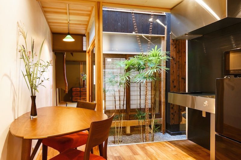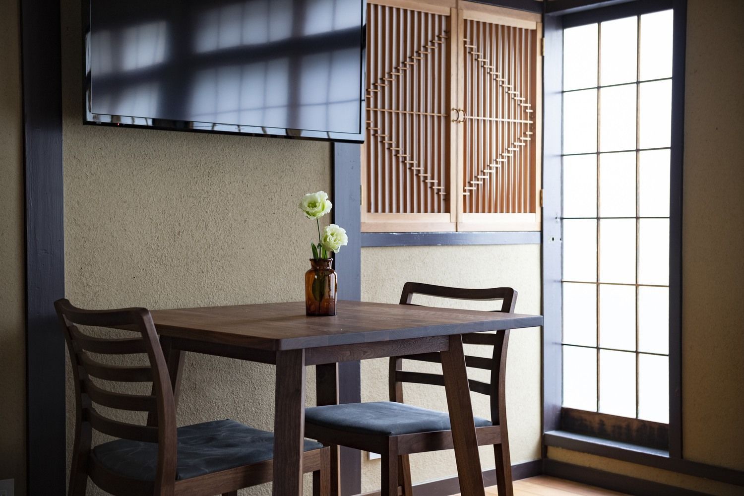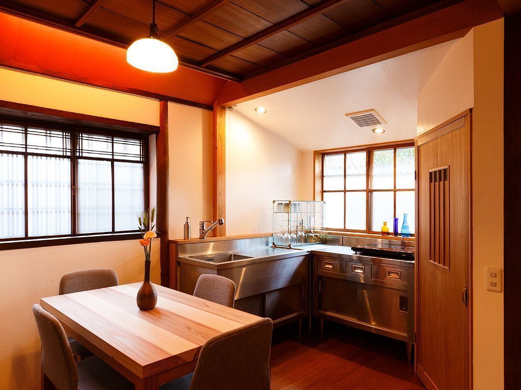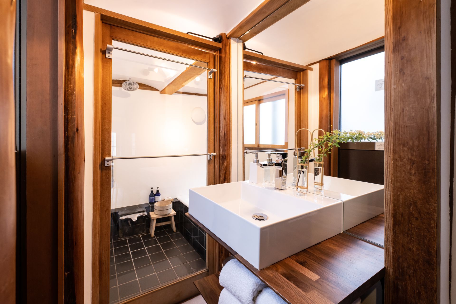 The house was fully renovated and decorated with a tasteful curation of antique and stylish modern elements, with the comfort of Western visitors in mind. Whenever possible, natural and locally sourced materials have been used, and synthetic materials avoided. Many elements have been made by hand in Kyoto by local artisans.