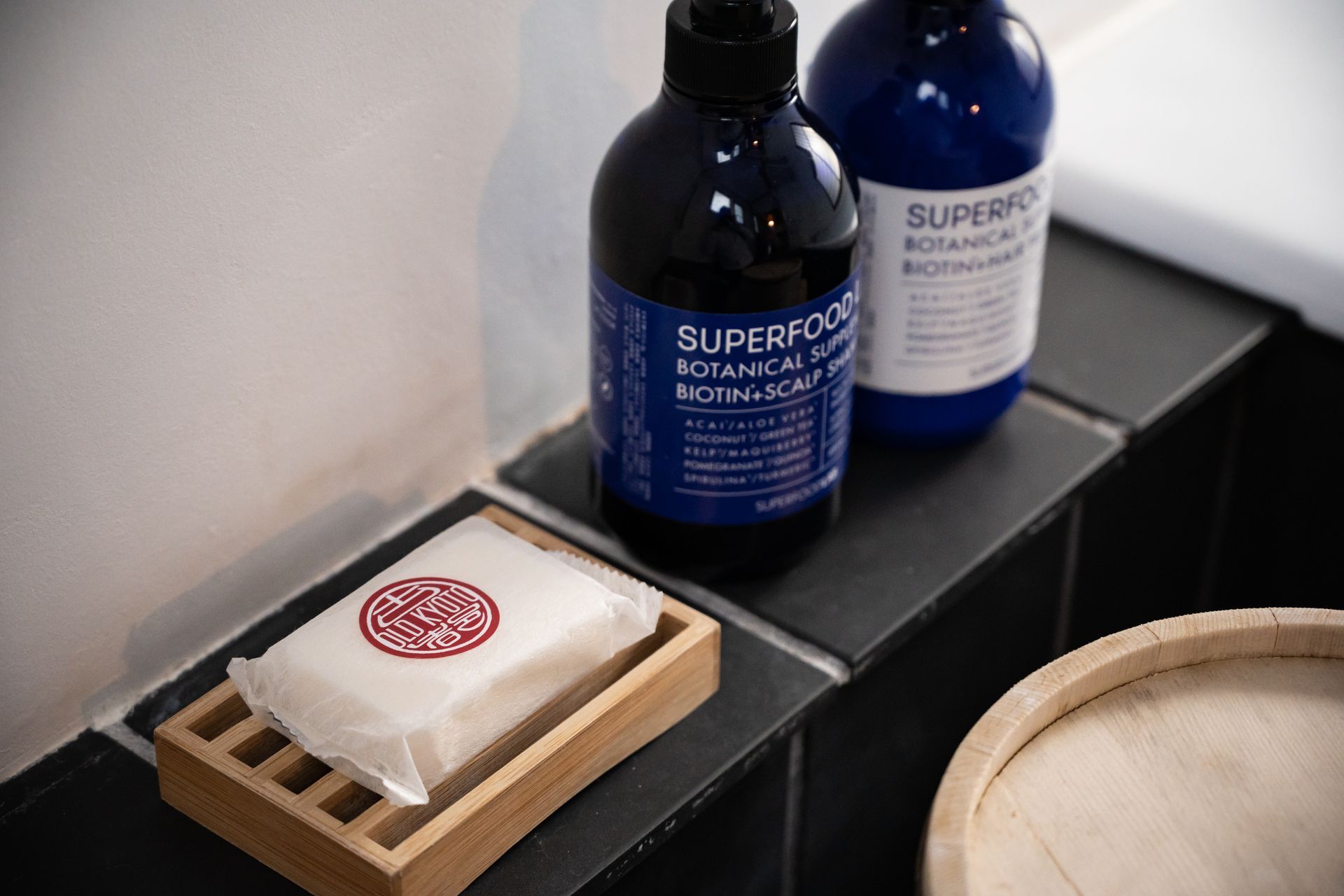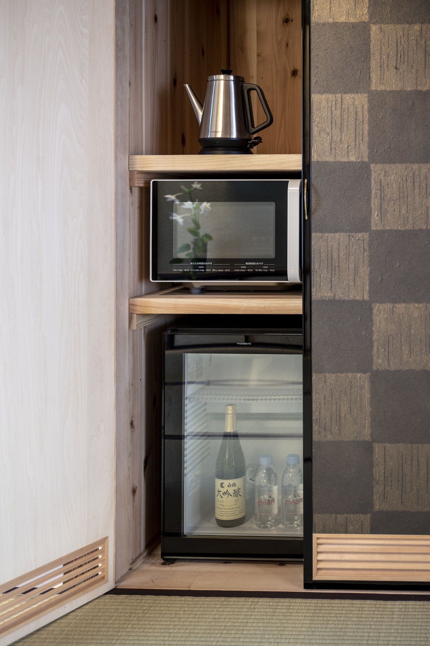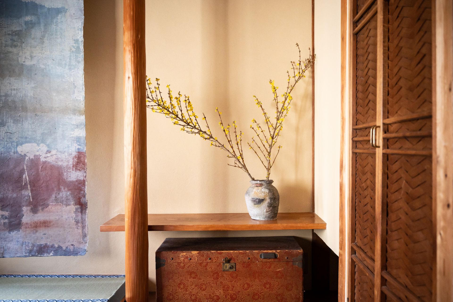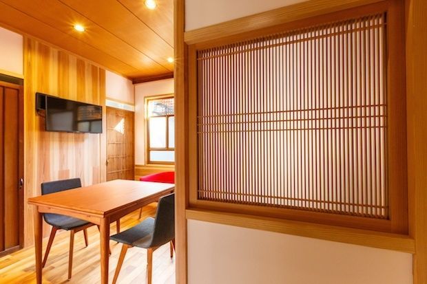 The house was fully renovated and decorated with a tasteful curation of antique and stylish modern elements, with the comfort of Western visitors in mind. Whenever possible, natural and locally sourced materials have been used, and synthetic materials avoided. Many elements have been made by hand in Kyoto by local artisans.