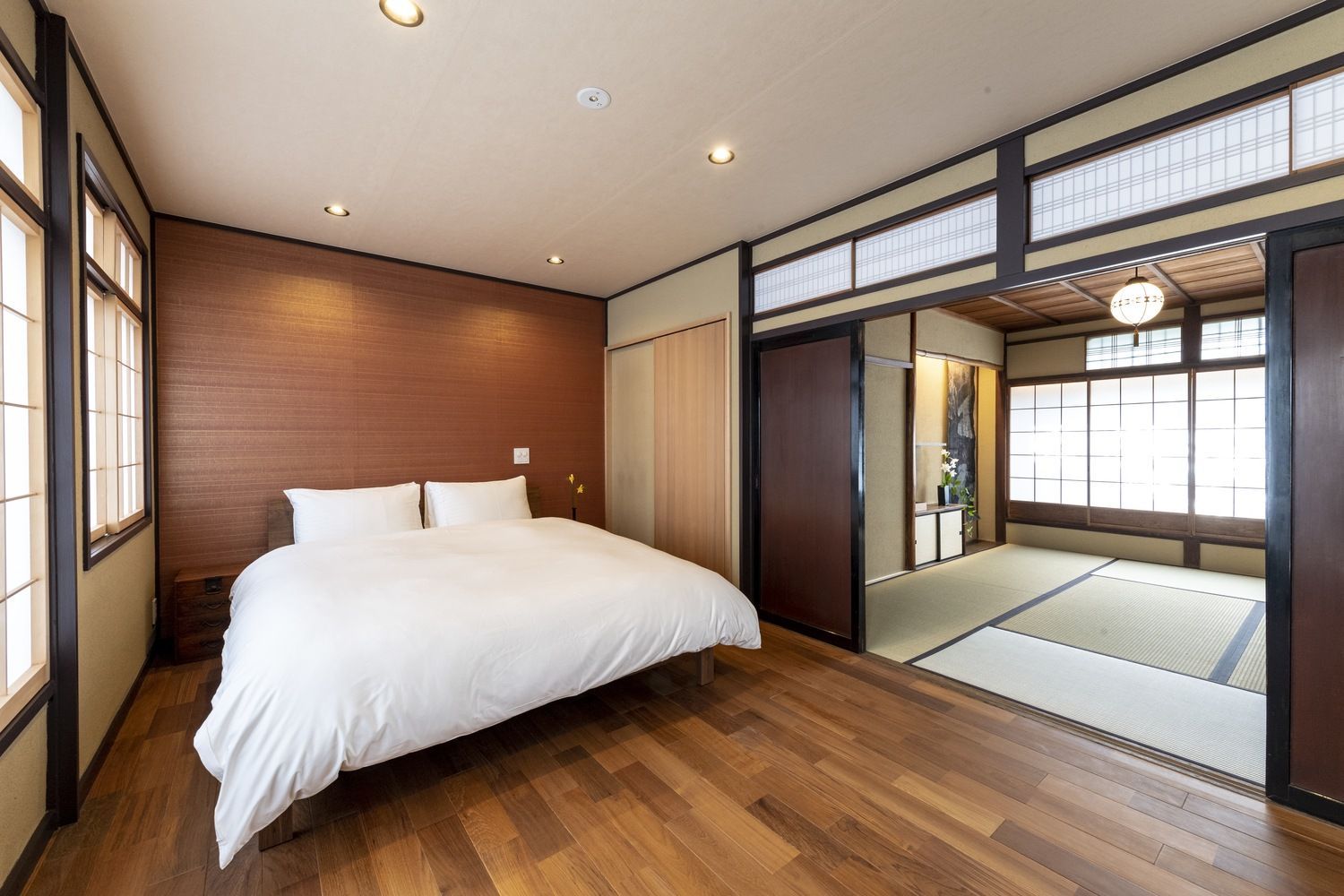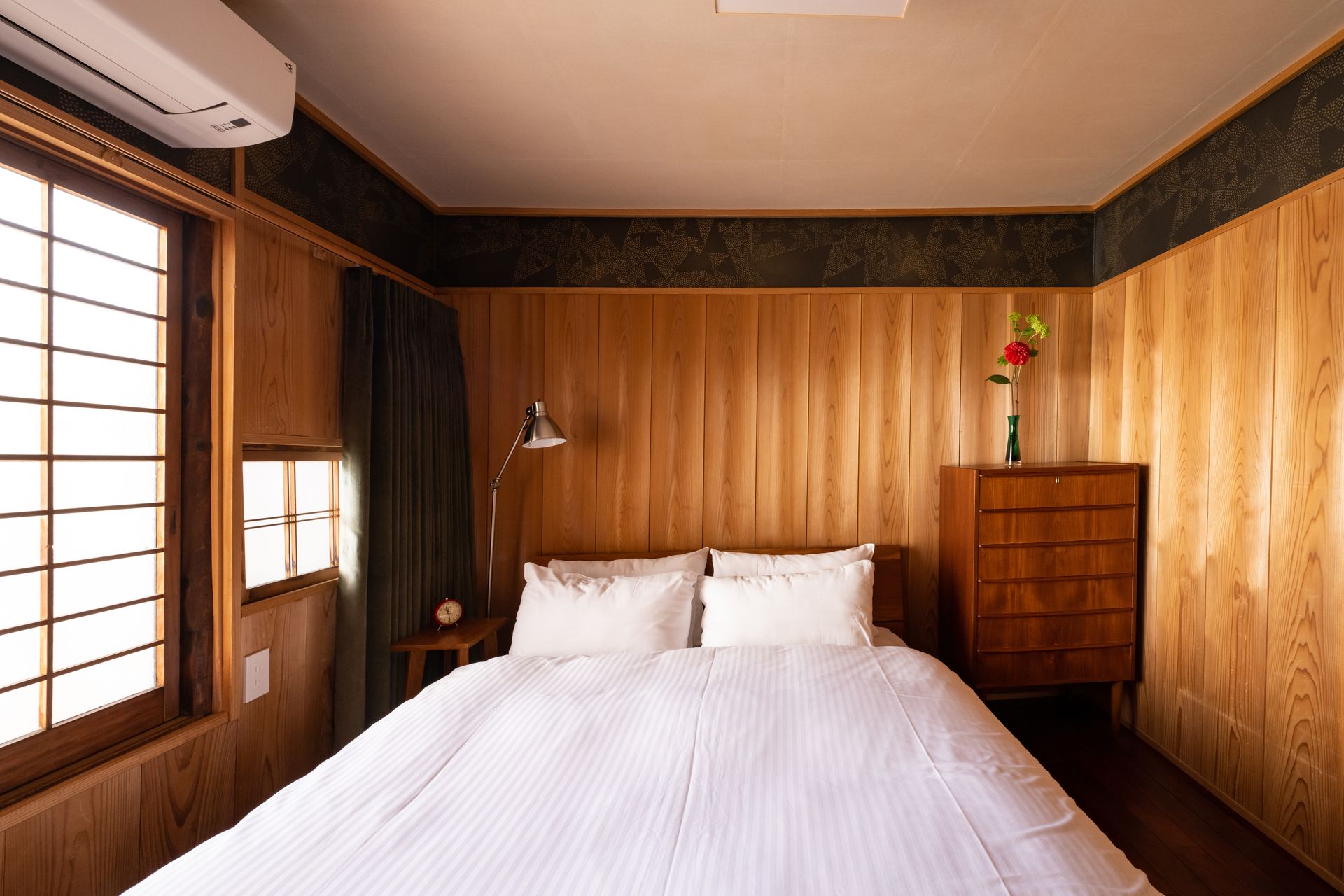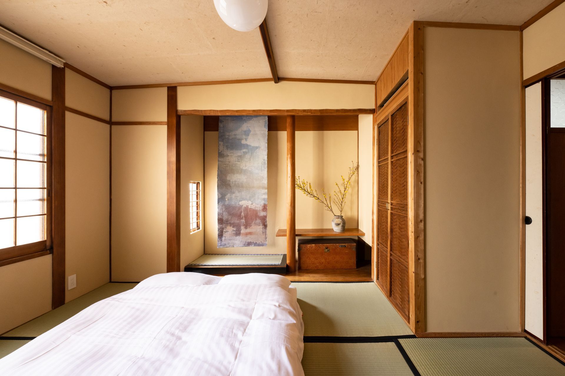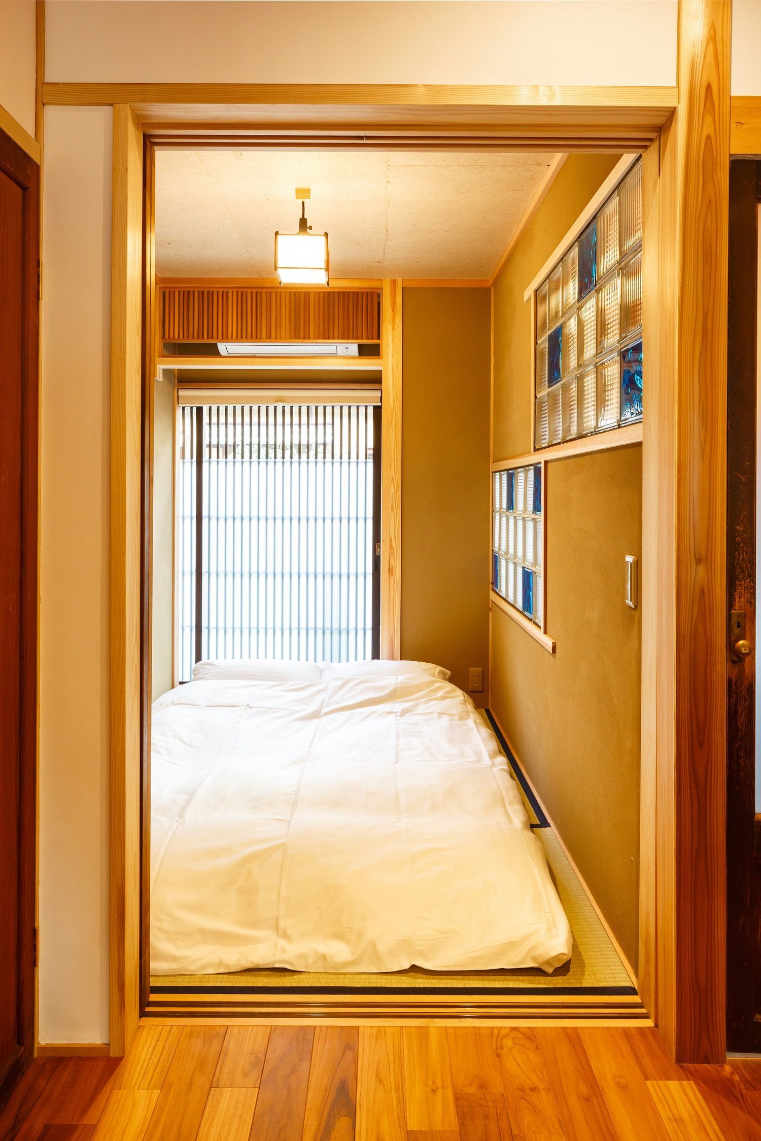 The Gion House Upper Level encompasses the entire upper floor of The Gion House, a traditional machiya which is steeped in history. Nestled on a quiet side street in the heart of Gion, the house was meticulously renovated in early 2023. With its own entrance, the Upper Level is completely independent from the Gion House Lower Level. There is room for up to four to sleep... two in the tatami bedroom on a futon, and two in the double bed in the Western-style bedroom. Alternatively, the entire house can be rented for up to eight persons.