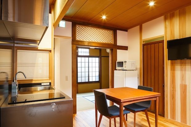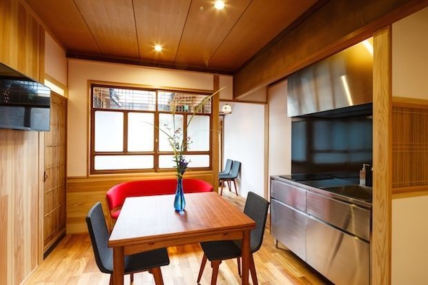 The Old Modern was built in 1928 by a prominent Kyoto architect as a residence for his family. It was meticulously maintained throughout the years, and the building underwent a complete high-end restoration in 2018. It is an architectural treasure, and a rare example of a "machiya" townhouse which is an eclectic blend of traditional Japanese structure with some very early "modern" Western details such as a fireplace, high beamed ceilings, and parquet flooring.