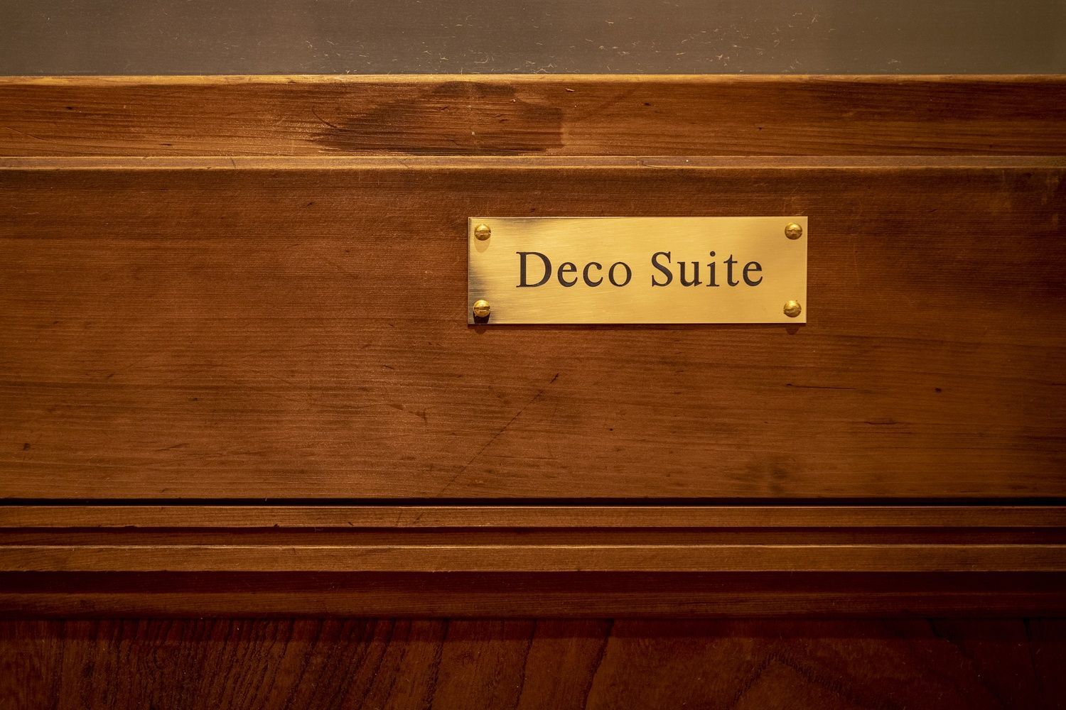 The Old Modern - Circle Suite is a luxurious one-bedroom suite, suitable for a single or a couple. It exudes an old-world charm, with it's Art Deco wallpaper, chandelier of marble and brass, and high ceiling with wooden beams. There is a comfortable queen-sized bed, small table with chairs, and closet. The Circle Suite occupies the lower level of the front building. Amenities include mini refrigerator, microwave oven, electric kettle, television, high-speed wifi internet, washer/dryer, iphone, high-end pillows and goose-down comforters.
