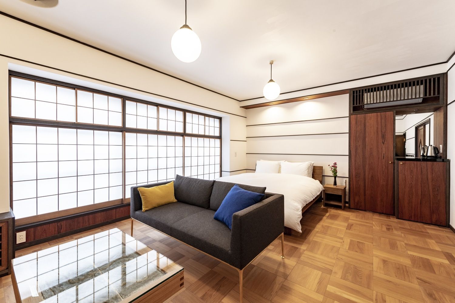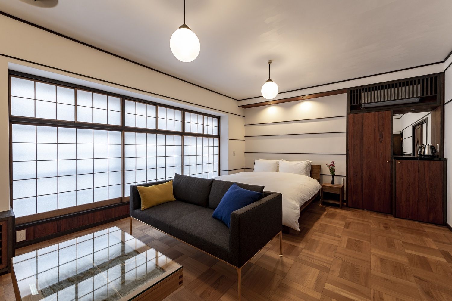 The Old Modern was built in 1928 by a prominent Kyoto architect as a residence for his family. It was meticulously maintained throughout the years, and the building underwent a complete high-end restoration in 2018. It is an architectural treasure, and a rare example of a "machiya" townhouse which is an eclectic blend of traditional Japanese structure with some very early "modern" Western details such as a fireplace, high beamed ceilings, and parquet flooring. It is an important part of Kyoto’s architectural legacy, and has been designated by the City of Kyoto as an important cultural asset.