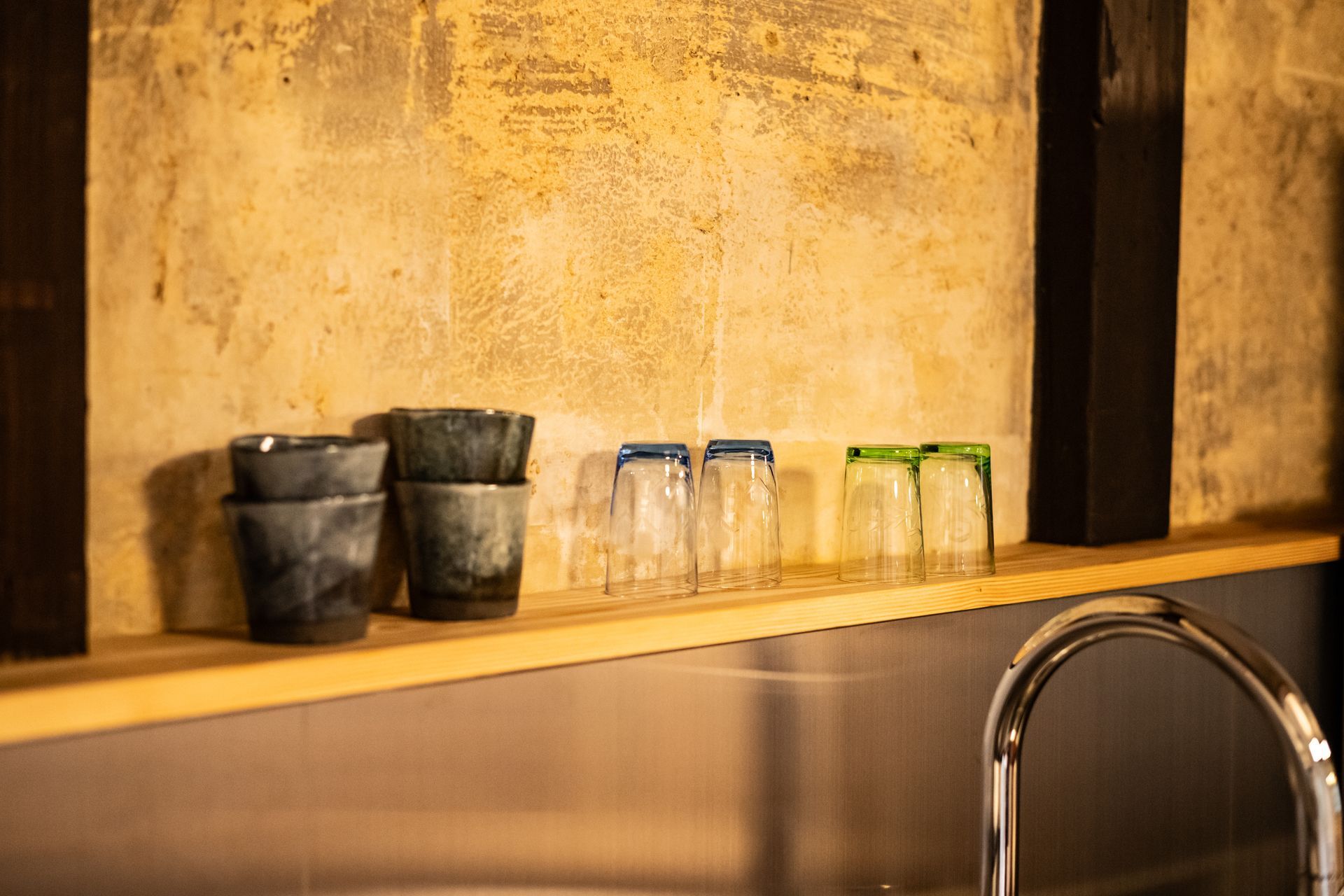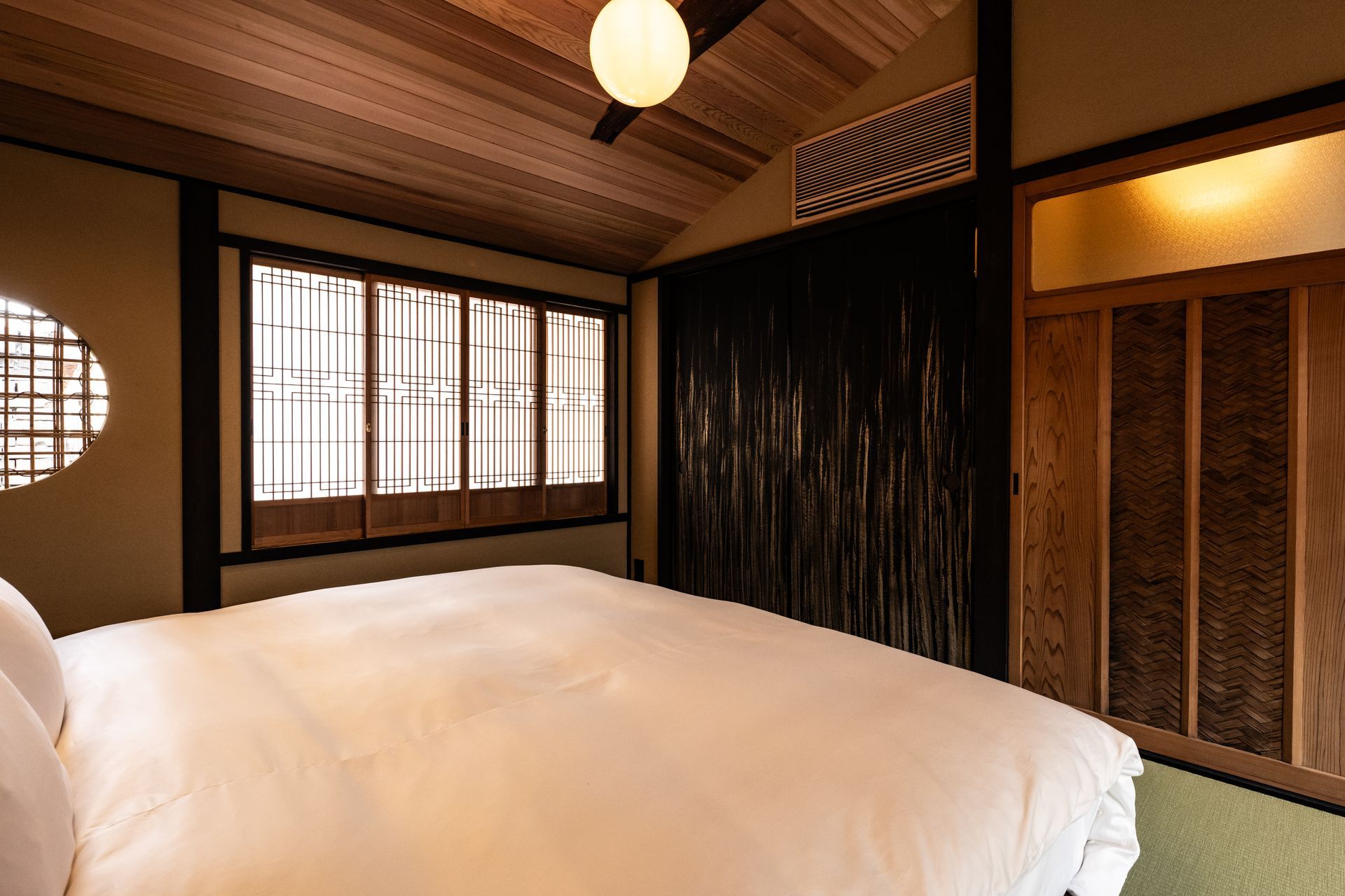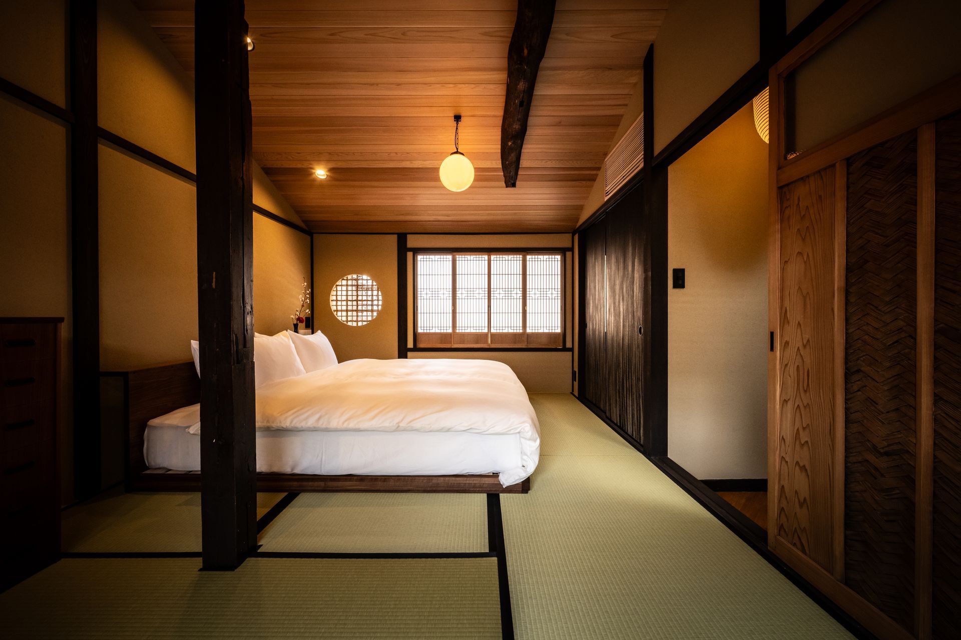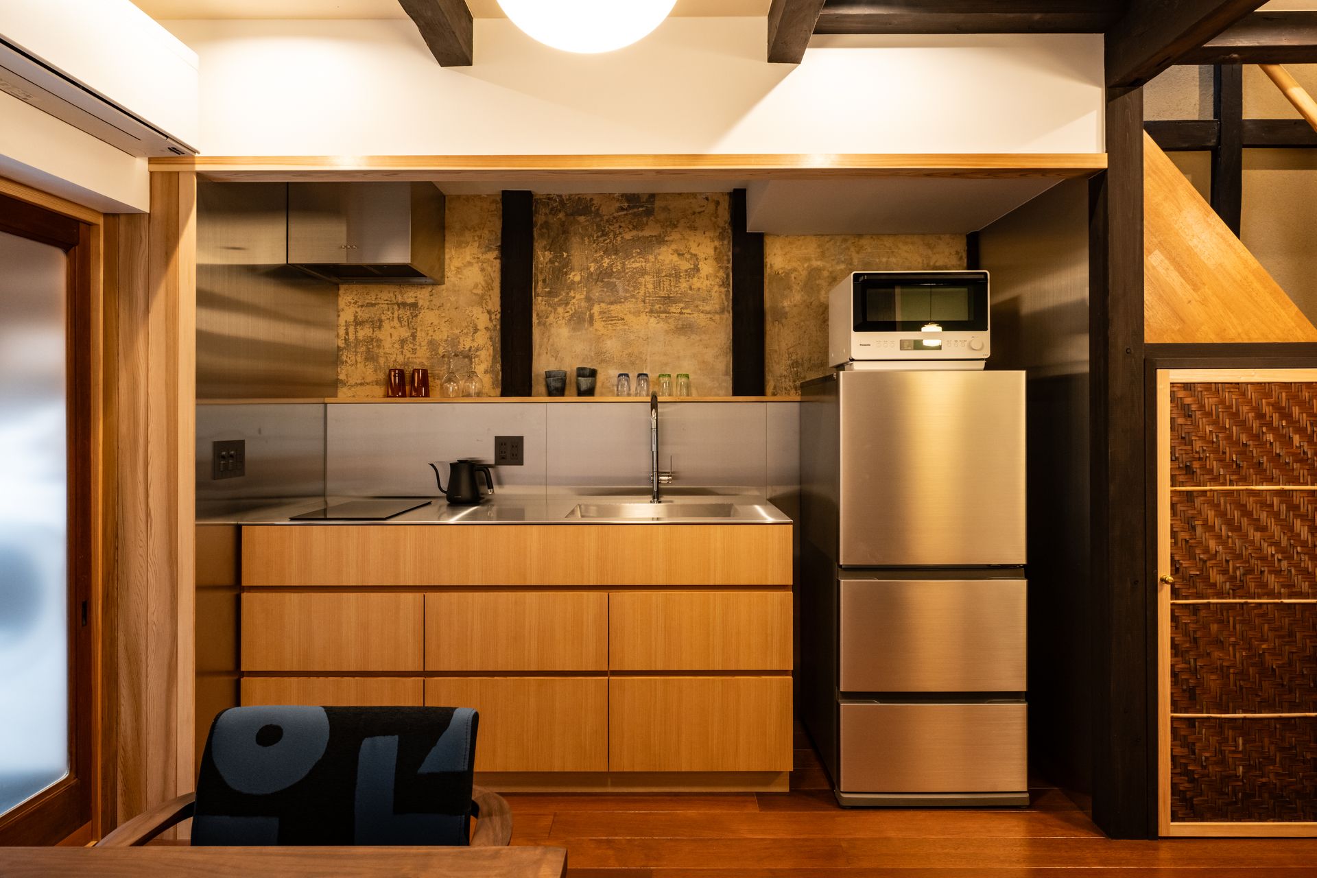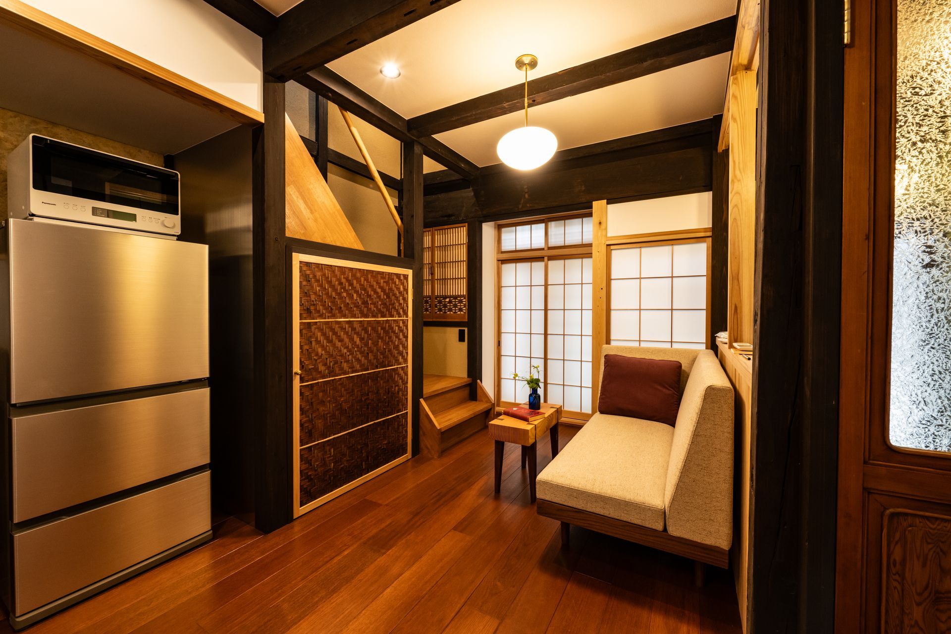 The house was fully renovated and decorated with a tasteful curation of antique and stylish modern elements, with the comfort of Western visitors in mind. Whenever possible, natural and locally sourced materials have been used, and synthetic materials avoided. Many elements have been made by hand in Kyoto by local artisans.